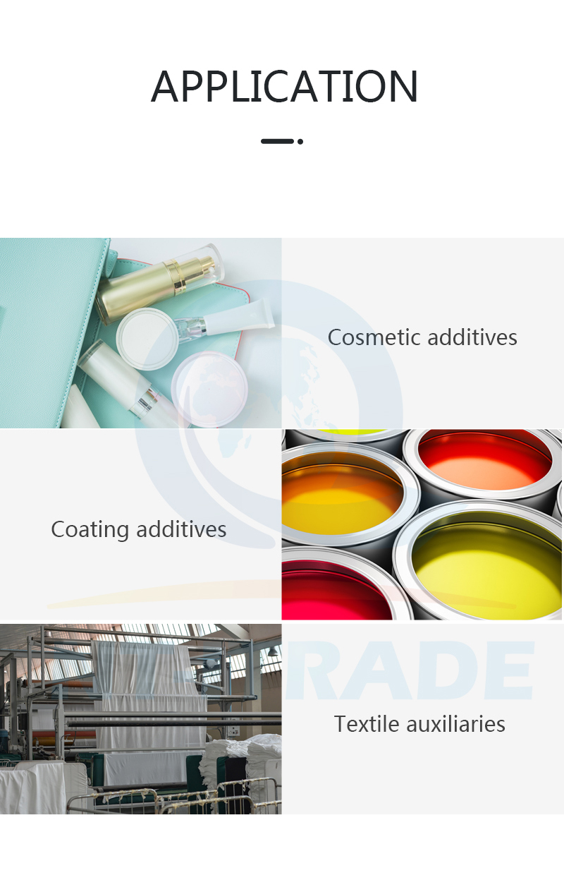It can be used as efficient scouring cleaning in printing and dyeing industry, wool spinning industry as wool scouring agent, paint coating as emulsifier, paper making as deinking agent of waste paper, pesticide and chemical fertilizer and other wet powder emulsifier and dry cleaning agent.It can also be used as the raw material for preparing washing powder, which is mainly used to play the role of emulsification to oil stain. Another major use is hard surface cleaning, such as aluminum defatting, floor waxing, also widely used.